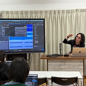 DAWソフトを使い、PC上で音楽素材編集やMIX作業をして「歌ってみた」で使える音源を編集します。音楽プロデューサーとして活躍する講師がDTMの基礎を丁寧にレクチャー。SNSで音楽活動全般をしてみたい方向けの体験授業です。