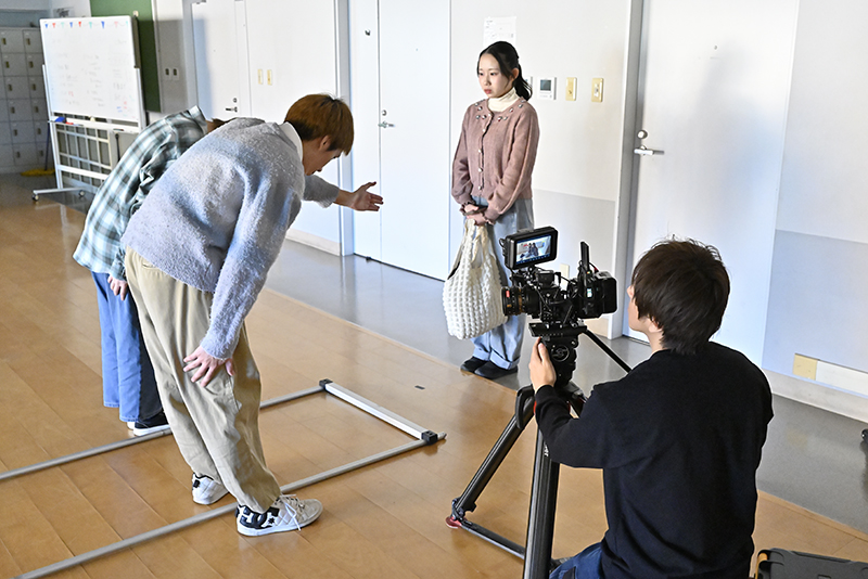 「映像演技実習」は、役者としてだけではなく、脚本、撮影、編集など、制作スタッフの役割も学び、映像演技を多角的に捉えて理解を深める授業。映画ディレクターで本学園卒業生の加納隼さんが1年間、映像演技や制作の流れなどを指導してくれます。