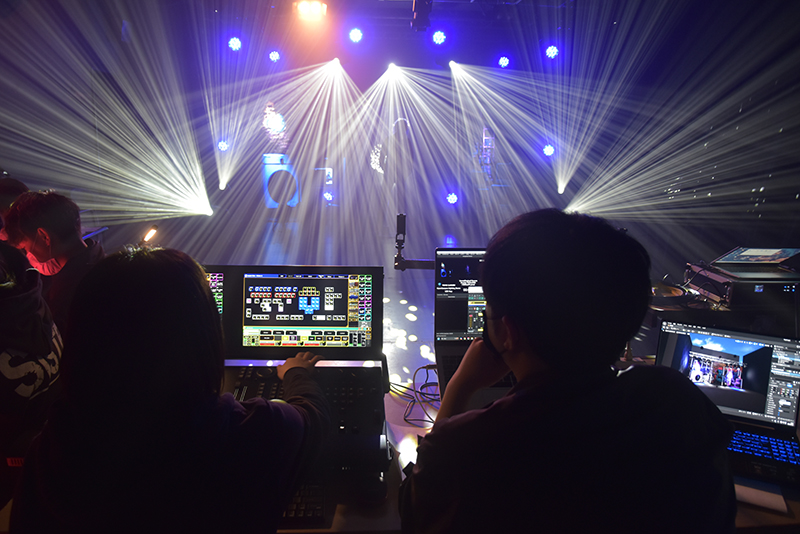 当日は、鶴崎さんが用意した照明プランに沿って、プロのデモンストレーションを見学。その後、参加者一人ひとりが実際に照明操作を体験し、音楽に合わせたライティングに挑戦しました。さらに、照明の仕事に興味を持ったきっかけや仕事のやりがい、照明スタッフの働き方など、参加者の質問にも答えていただきました。