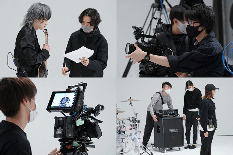 機材のセッティングから撮影・照明・演出まで、一貫してプロモーション映像科の学生たちが行いました。