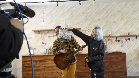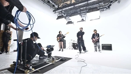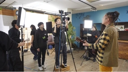 シンガーソングライターやバンドなど、さまざまなアーティストのミュージックビデオを制作する実習を数多く実施。アーティストやレコード会社への企画プレゼン、 ロケハン、機材の手配、演出、撮影、編集、完パケまで、実際の制作現場と同じ流れを経験するなかで実践力を身につけます。