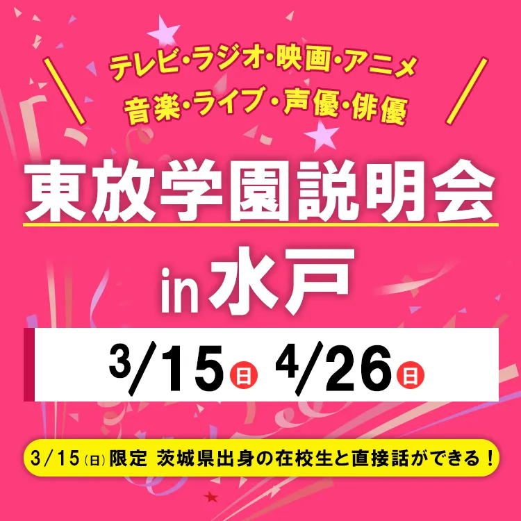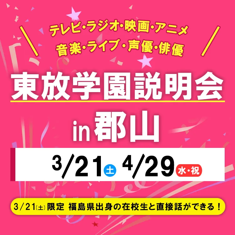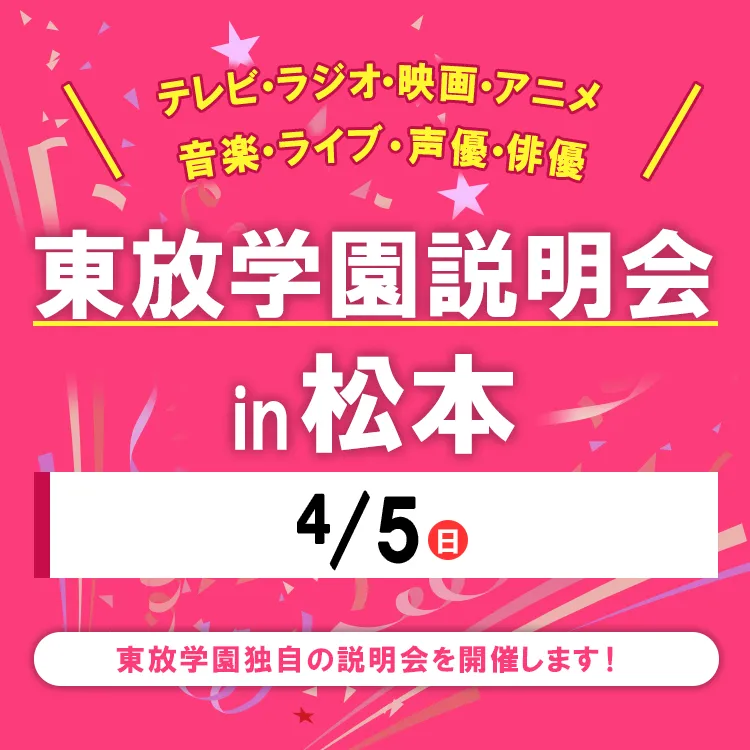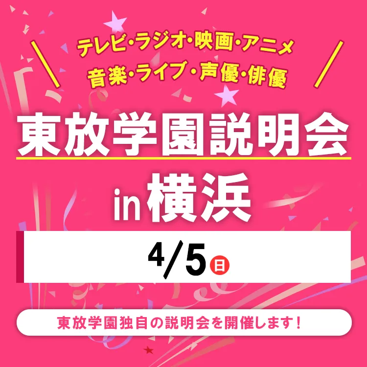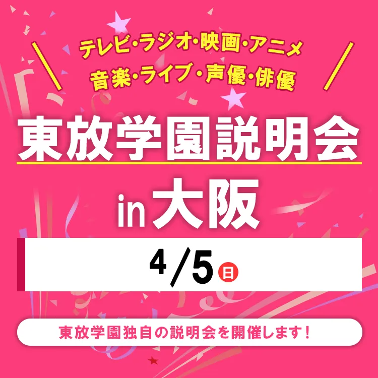 音楽・音響・ライブ・コンサートなど、音楽業界スタッフの人材育成に特化しているのが東放学園音響専門学校です。実際に自分たちでアーティストをブッキングし、ライブ・コンサートを企画・開催したり、レコーディングを行う実習などをとおして、音楽の現場で通用する技術や知識を身につけていきます。「SUMMER SONIC」などのフェスにスタッフ参加する現場実習も豊富です。