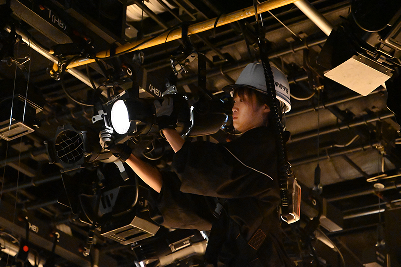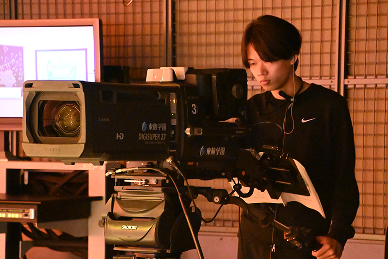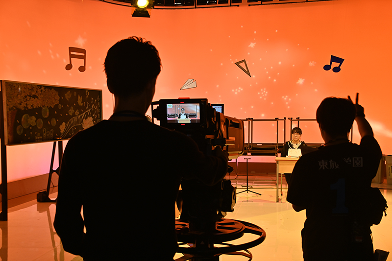音楽番組やバラエティ番組など、さまざまなジャンルの番組を学生たちが協力して制作。制作・演出やカメラ、音声、照明、美術など、学科ごとに役割を分担し、本格的な番組制作を体験します。