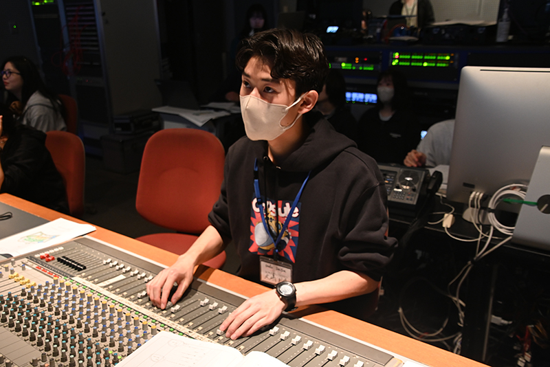 この日は音楽番組『Music Park』を収録。収録後には反省会も行い、次回に向けて課題を共有しました。夏まで続く授業の中で、学生たちは実践をとおしてスタッフワークを身につけます!